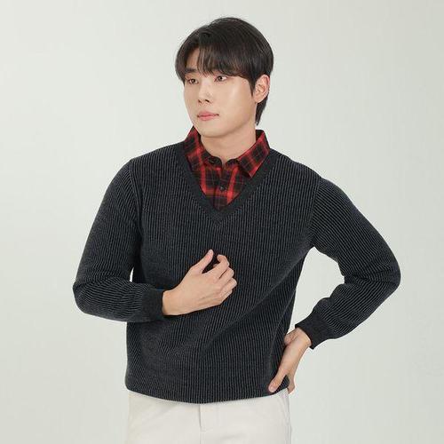 [지니골프]체크셔츠 레이어드 남성 니트