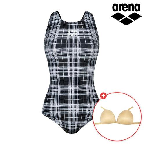 아레나 세이브존08 여성수영복 멜로우체크 2부 반신 U백 A5FL1LD40BLK
