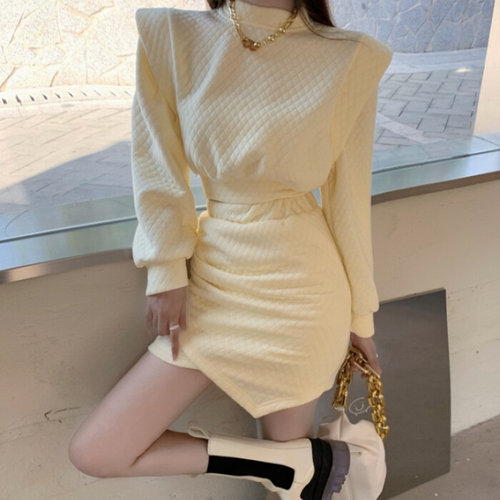 ANYOU 패션 빈티지 투피스 여성 니트 체크스커트 브이넥 가을 세트