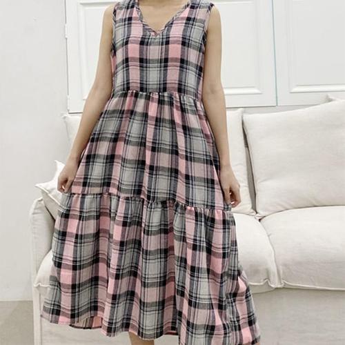 [신상오픈런]민소매원피스 브이넥 체크 캉캉 슬리브리스 (29832089)
