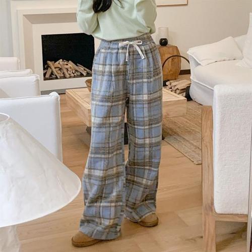 [신상오픈런]플리스팬츠 트윈 공항 휘뚜루 원마일 허리끈 체크바지 (29414671)