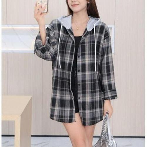 [셀러허브_여성트랜드패션]여성 셔츠 체크 후드 가을 긴팔 아우터 겨울 체크남방