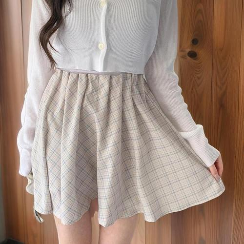 [신상오픈런]여성용 체크무늬 밴딩 플레어 미니 스커트 (32327998)