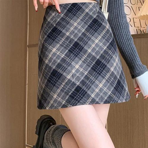 크레스티 여성 가을겨울 체크 A라인 미니 스커트 하이웨 날씬해 보이는 치마