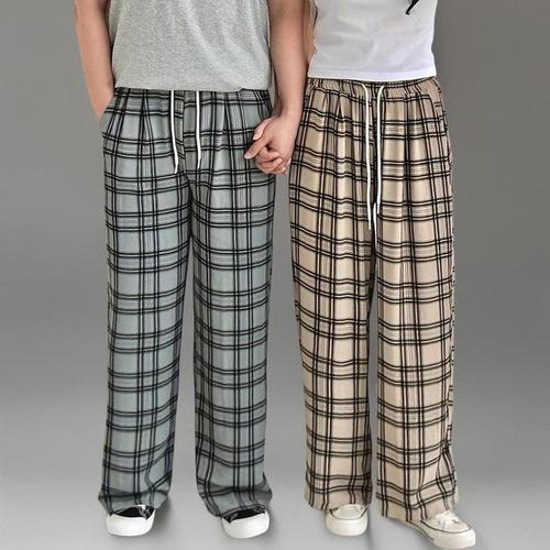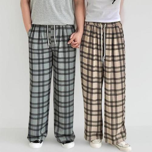 [신상오픈런]남녀공용 체크무늬 컬러 홈웨어 편안한 와이드 팬츠 (39139032)