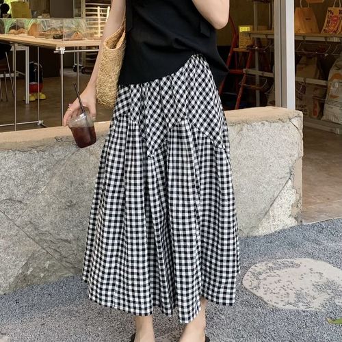 유니픽 여성 체크 모직 롱 스커트 가을겨울 신상 하이웨이스트 A라인 패션 캐주얼 롱 스커트CC