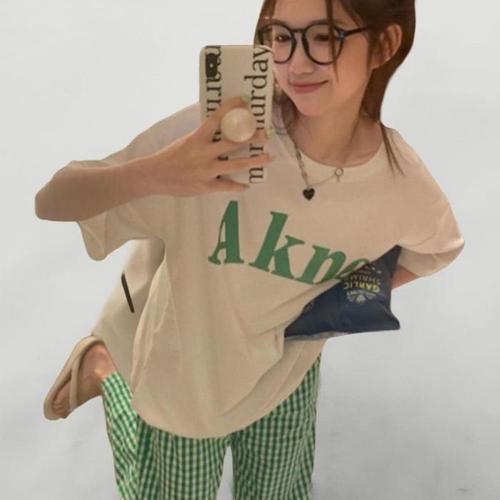 [신상오픈런]여성용 체크 패턴 반팔 티셔츠와 팬츠 잠옷 세트 (38284193)