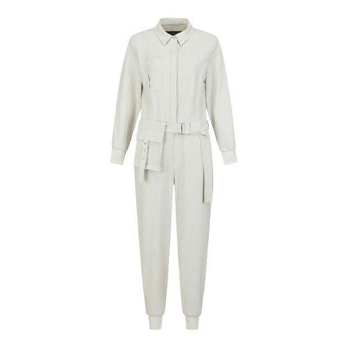 Makone 여성 가을 겨울 체크 집업 패션 와이드 팬츠 점프슈트