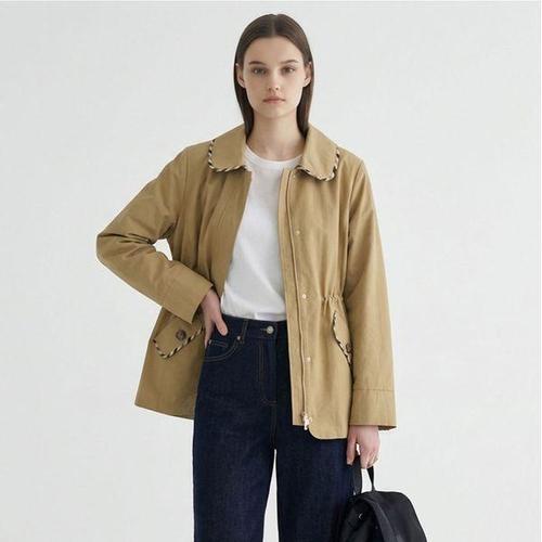 [막스카라]클래식 체크 카라 스트링 트렌치 자켓
