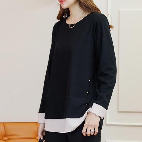 [신상오픈런]여성 스트라이프 초콜릿 라운드넥 레이어드 긴팔 티셔츠