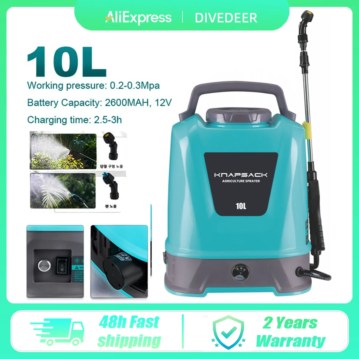 DIVEDEER 10L 전기 분무기 충전식 고압 소독제 및 살충제 분무기 정원 및 농업용