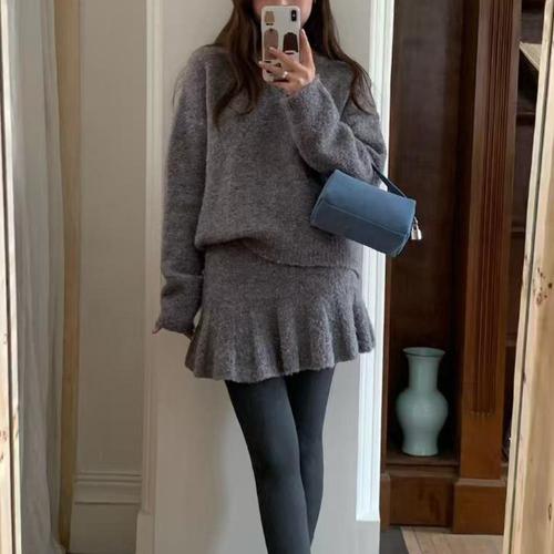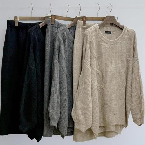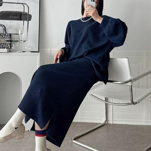 [신상오픈런]여성용 가을 오버사이즈 긴팔 니트와 스커트 투피스 세트 (41265857)