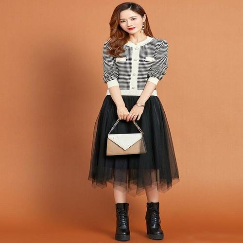 [브리치] / (55 88까지) 라운드넥 니트 스커트 세트 여성 투피스 겨울 가을 빅사이즈