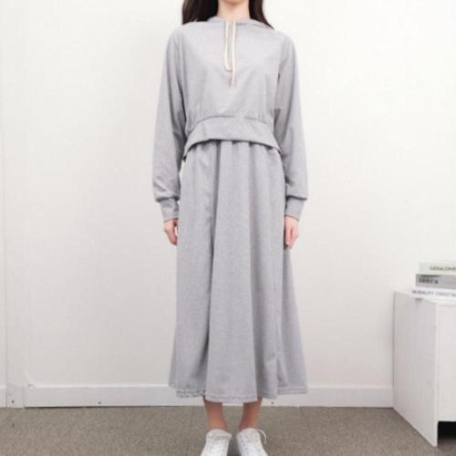 투피스 원피스 롱 후드 치마 무지 캐주얼 데일리 WFL8Z84