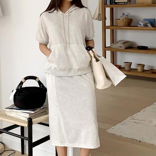 [신상오픈런]반팔후드티 캥거루포켓 스웨트셔츠 일자치마 투피스 (31581556)