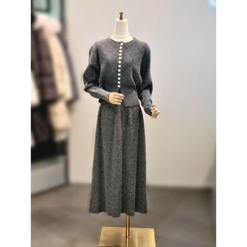 [핑크엘리제]겨울 백버튼 스커트 니트 셋업 포테르니트투피스