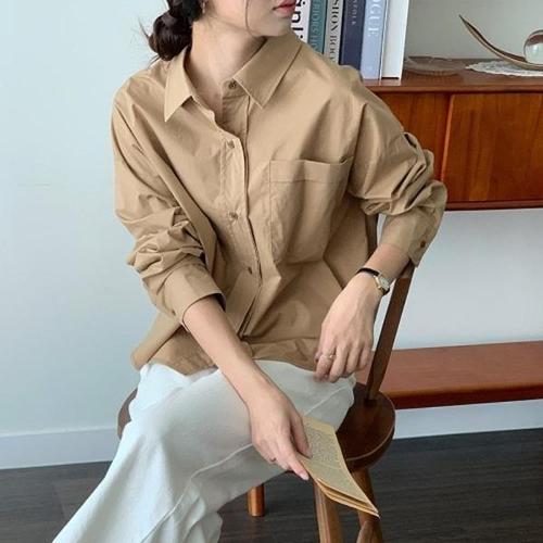 [신상오픈런]밤베드 주머니 면 여성 사무실 셔츠 드롭 가을 롱슬리브