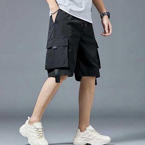 남자 사이드 밴딩 다용도 스판 카고 반바지 DR-PTH-Q001-블랙