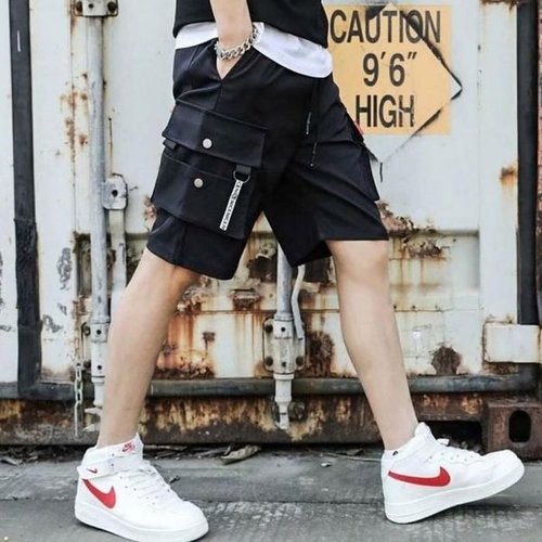 [셀러허브_여성트랜드패션]남성 블랙 포켓디자인 남성반바지 밴딩반바지 카고 포켓반바지 반바지