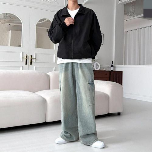 [sado]남성 청바지 머드워싱 밴딩 카고 데님 와이드 바지 사계절 SF1048M