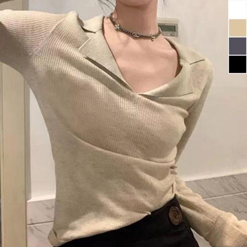 [셀럽하우스]여성 DTBC7310 브이넥 데일리 니트 카라 클래식 무지 골지티 긴