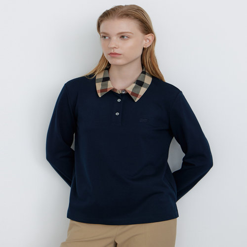 닥스 여성 [울] 다크그린 체크 배색 긴소매 카라 티셔츠 (DLTS4DE83E2)