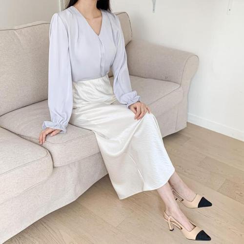 [신상오픈런]노카라블라우스 셔링 긴소매 봄하객룩 하늘색 (29252160)