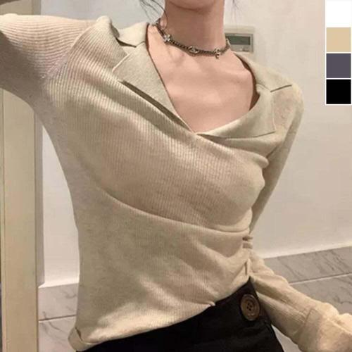 [셀럽하우스]브이넥 MSSA9299 여성 캐주얼 카라 니트 필수템 무지 골지티 긴