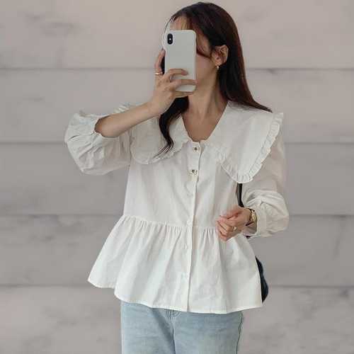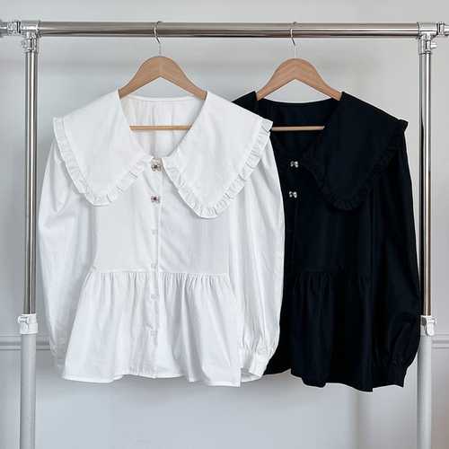 옷자락 / 여성 러블리 프릴 빅카라 리본버튼 가을 하객 블라우
