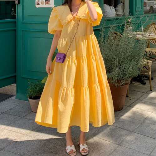 메이첼 퍼프소매 레이스 카라 롱 원피스 01124 빅사이즈 포함