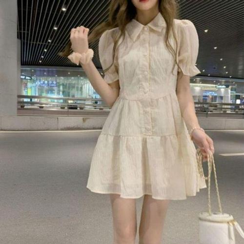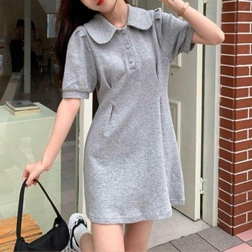[에이치플러스몰]여름 베이직 퍼프소매 원피스 카라넥 올데이 미니 원