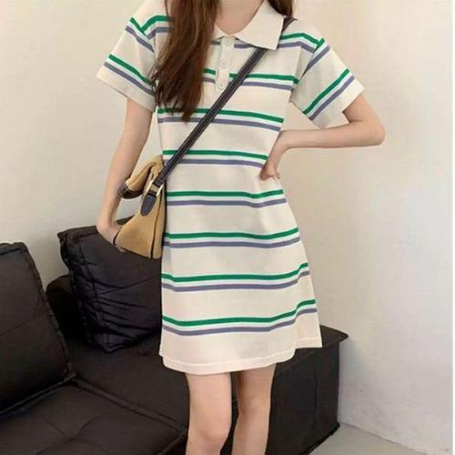 데일리 DHH-E92 스트라이프 의류 반팔 미니 카라 패션 원피스