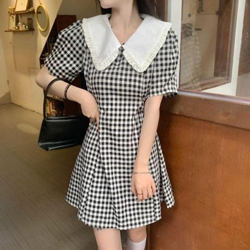 [에이치플러스몰]하객룩 러블리 추천 카라 체크 꾸안꾸 미니 원피스 데