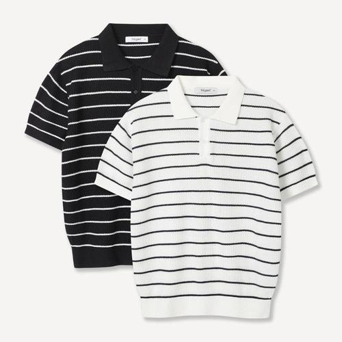 [폴리그램]텍스처 스트라이프 카라 반팔 니트 - 3COLOR