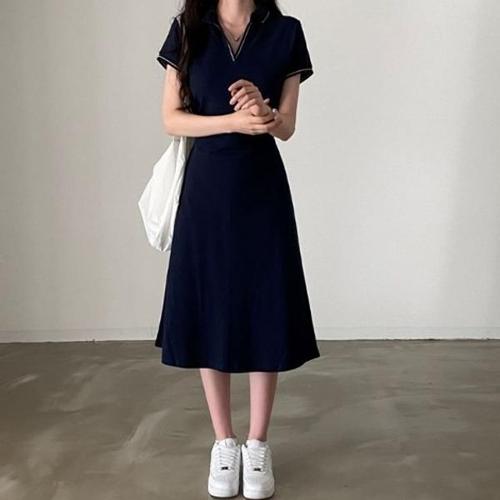 [엄지척]카라 배색 반팔 원피스 여름 캐주얼 레귤러핏_19951544_667501