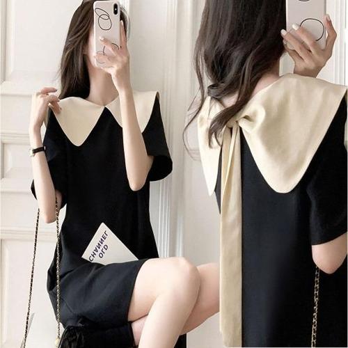 여자 배색카라 반팔 미니 원피스 A라인 여름 하객룩 WFIKX54