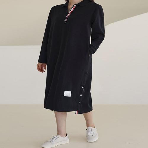 [WPBG]배색 테이프 언발 카라넥 롱 원피스
