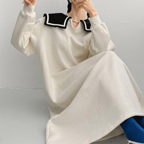 옷자락 / 여자 겨울 배색 세일러카라 99사이즈 기모 롱원피스