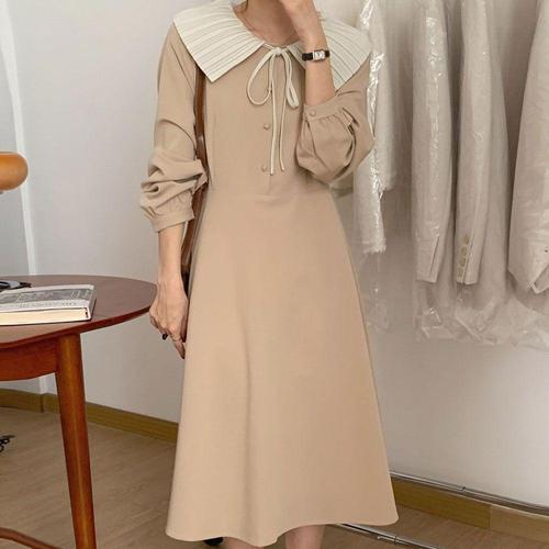 [드리다]여자 가을 겨울 카라 플리츠 A라인 빅사이즈 플레어 원피스 40-50대 미시 중년 엄마옷 하객 상견..