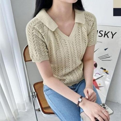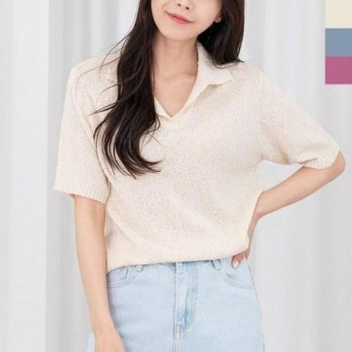 [엄지척]심플 여자 반팔니트 여성 여름 카라 니트 반팔티 3색_19677552_667501