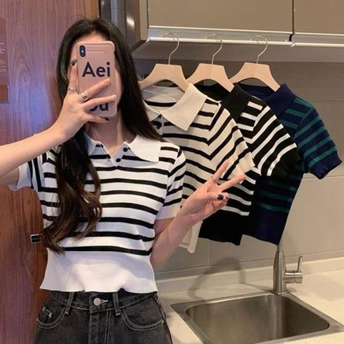 [엄지척]여성 스트라이프 카라 여름 반팔니트 HH-E52_19680683_667501