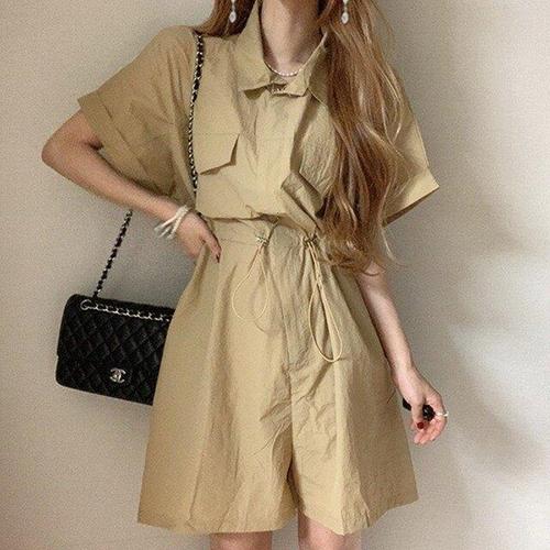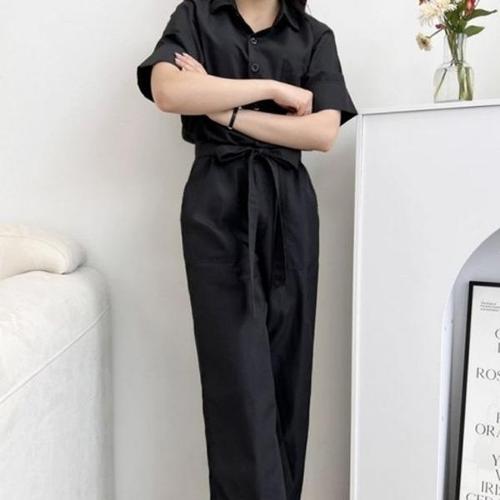 [에이치플러스몰]스타일 카라 무지 봄 점프슈트 반팔 포인트 점프수트
