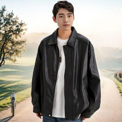 [에이치플러스몰]남자 남녀공용 오버핏 카라 가죽자켓 레더 라디어 자켓 블루종 점퍼 커플 항공 봄 자켓 ..