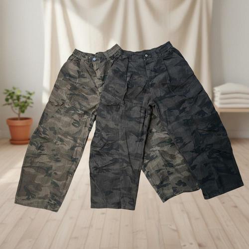 남성 카모 건빵 넓은 커브드 팬츠