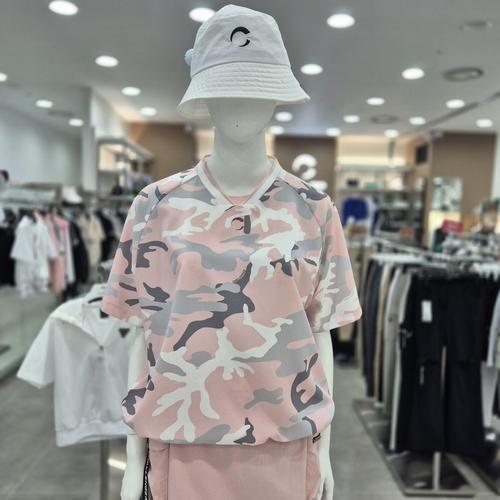 [챌린저]여성 카모 프린트 변형 브이넥 반팔 우븐 핑크_CHE2WWT5618PK_IC