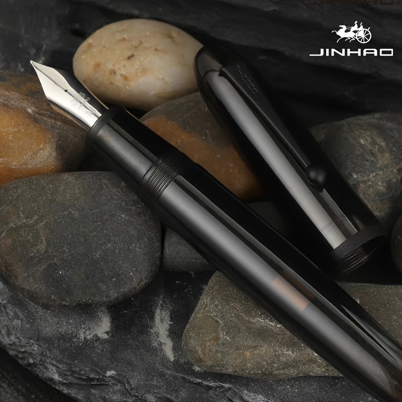 TEMU 1개 진호 9019 다다오 투명 블랙 아크릴 만년필, 스크류 오프 캡 & 컨버터 포함 - F/EF/M 펜촉, 비즈니스 필기, 서예, 사무용, 예술용, 세련된 디자인, 고급 소재, 부드러운 잉크 흐름, 문구 애호가를 위한 선글라스 스타일