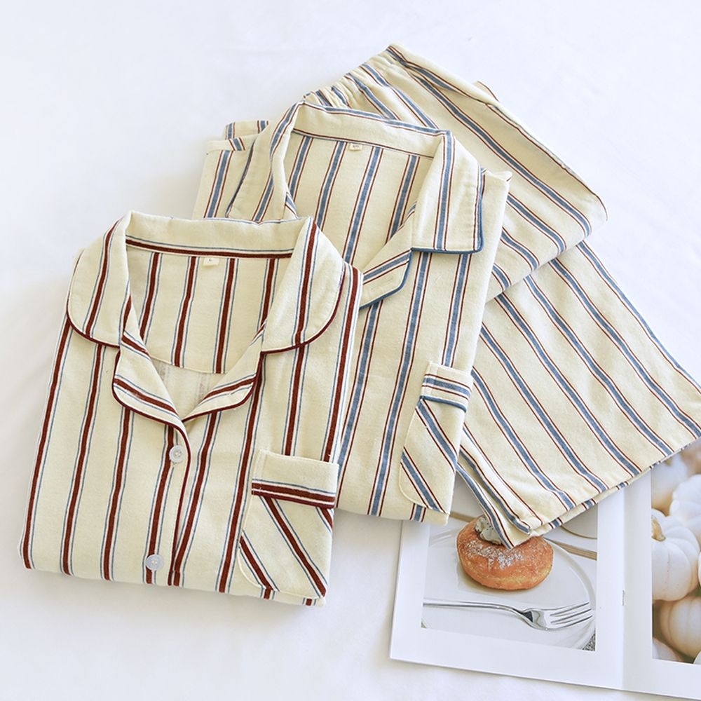 TEMU [남성/여성] 커플 스타일 파자마, 남성 또는 여성용, 긴팔 파자마 라운지웨어, 버튼업 상의와 하의, 상의 1개와 하의 1개, 데이