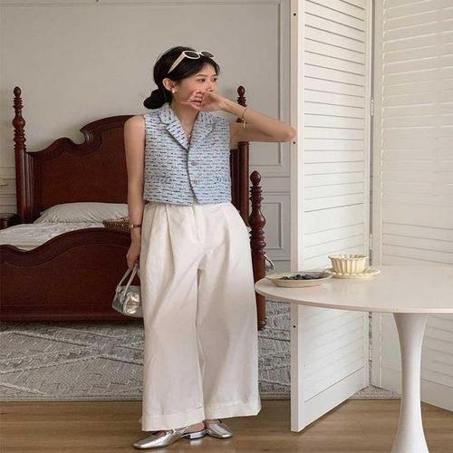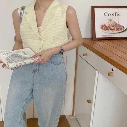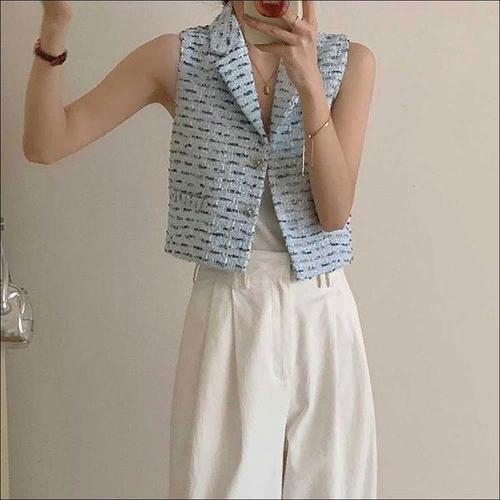 [에이치플러스몰]민소매 트위드 카라 니트 조끼 베스트 여성 여름 하객룩