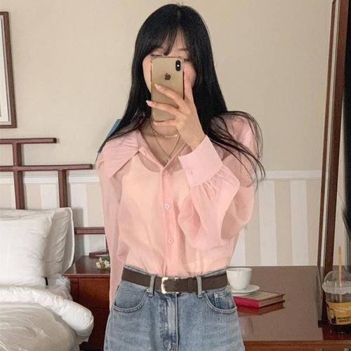 [에이치플러스몰]시스루블라우스 오버핏셔츠 데일리 나시코디셔츠 시스