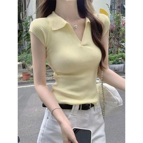 [셀러허브_여성트랜드패션]민소매 데일리룩 HL] 캐주얼 브이넥 니트티 카라 여름
